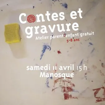 Atelier parents-enfants (5-8 ans) gratuit, co-animé par les graveuses d'Empreinte 04 et les conteuses de De Bouche à Oreilles, dans le cadre de l'action "Parents à hauteur d'enfants" du REAAP.