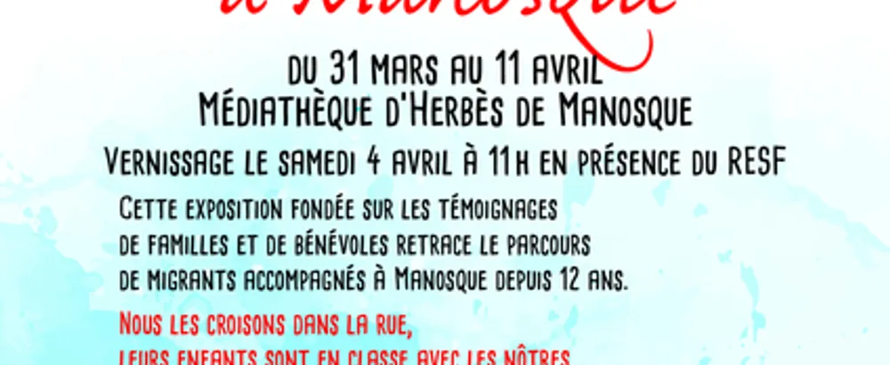 Cette exposition fondée sur les témoignages de familles et de bénévoles retrace le parcours de migrants accompagnés à Manosque depuis 12 ans. Nous les croisons dans la rue, leurs enfants sont en classe avec les nôtres…