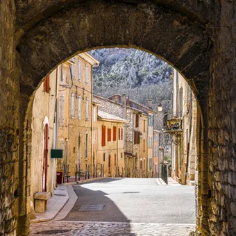 Implanté en amphithéâtre entre les falaises de calcaire et le Verdon, le village actuel a été bâti au XVème siècle autour d'un solide rempart défensif comportant 7 tours crénelées et deux portes fortifiées.